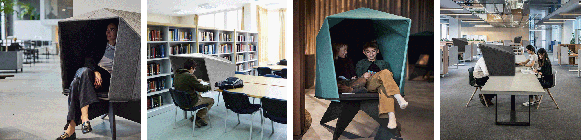 Ved at reducere lyd og afskærme for visuelle indtryk skabes der mulighed for pause, opladning, fordybelse og øget fokus -der skabes øget trivsel.