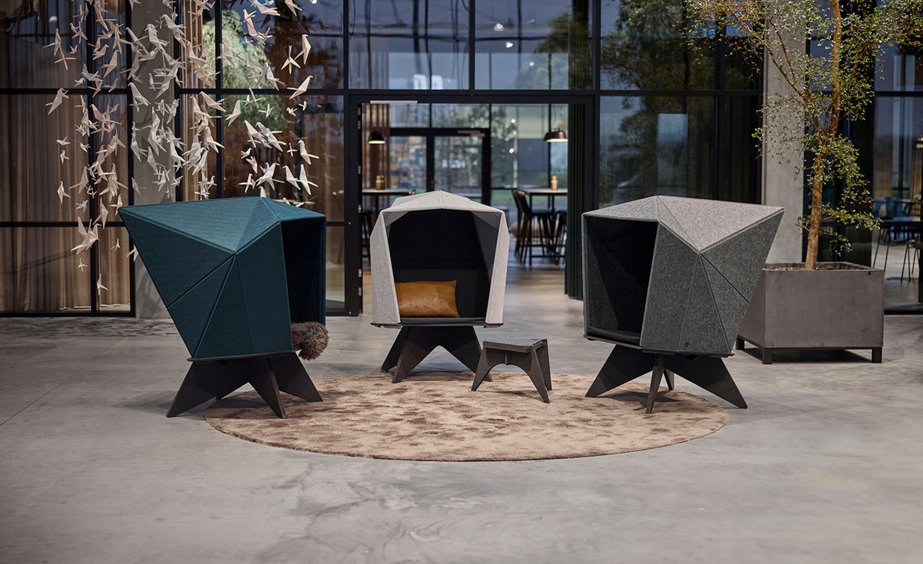 Med ergonomisk design, inspireret af Japansk origami skaber vores møbler en tredimensionel rumoplevelse, der fremmer tryghed, rumlighed, omfavnelse og ro.