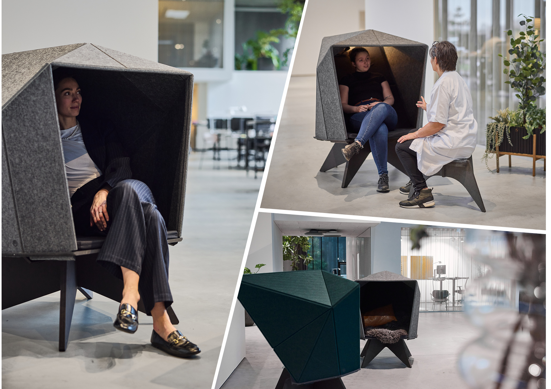Habi®Cave anvendes i venteværelset til at skærme fra omgivelserne og skabe tryghed og ro før konsultationen.