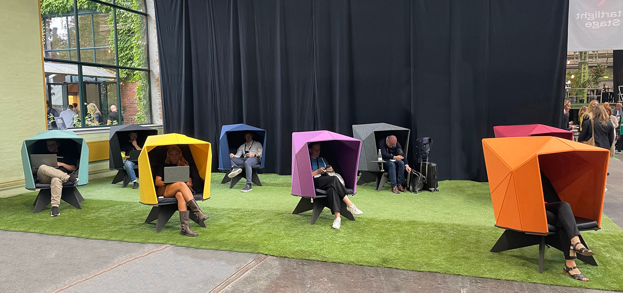Messer og konferencer byder på mange indtryk, information og ny viden. Habi®Cave skaber plads til opsummering og refleksion over indtrykkene. Plads til telefonopkald og tjek af emails, og mulighed for ro og pause fra